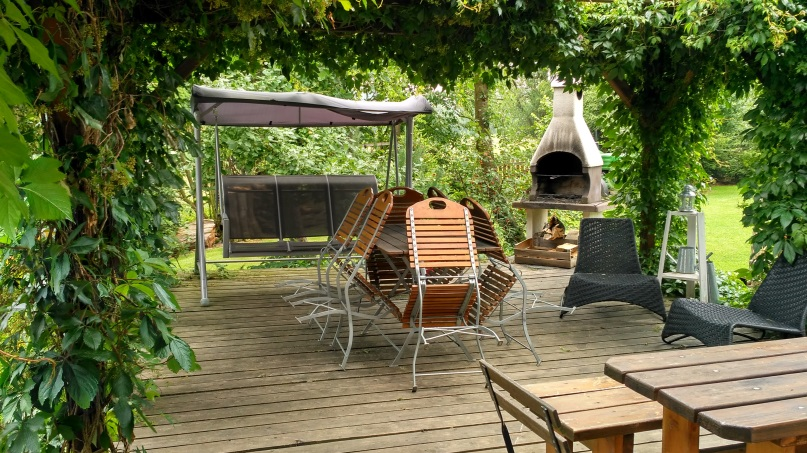Po příjezdu na místo si všichni prohlédli interiér chalupy a terasu. Překvapení čekalo venku v podobě veliké zahrady. Tady si všichni našli své místo k odpočinku. Muži objevili hřiště a traktor, který mohli prozkoumat. Ženám se líbila lehátka v klidné části zahrady na sluníčku. Nejvíce zabodovala houpačka v podobě houpací lavice.