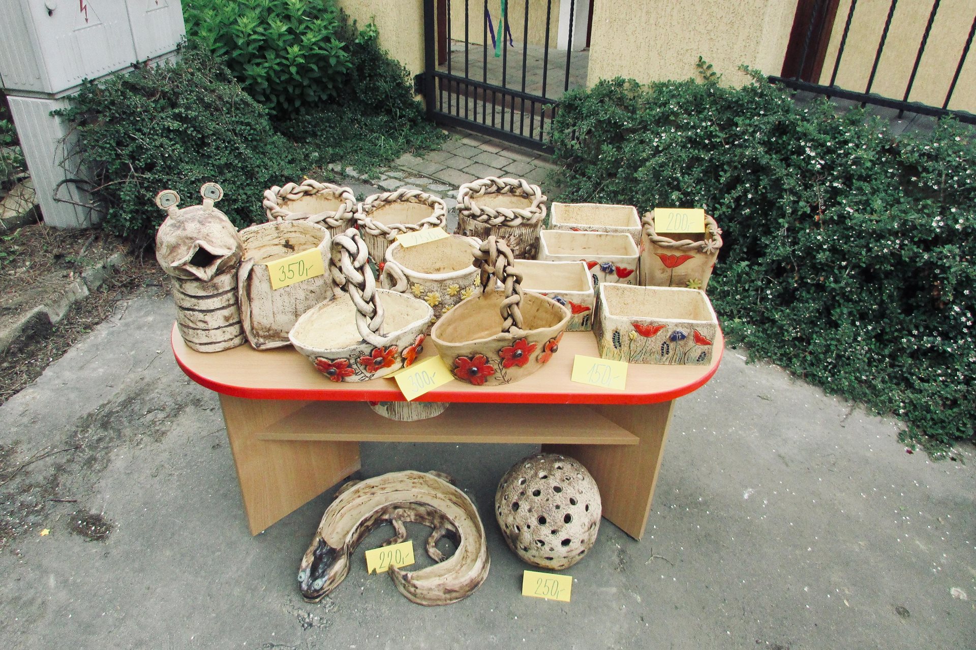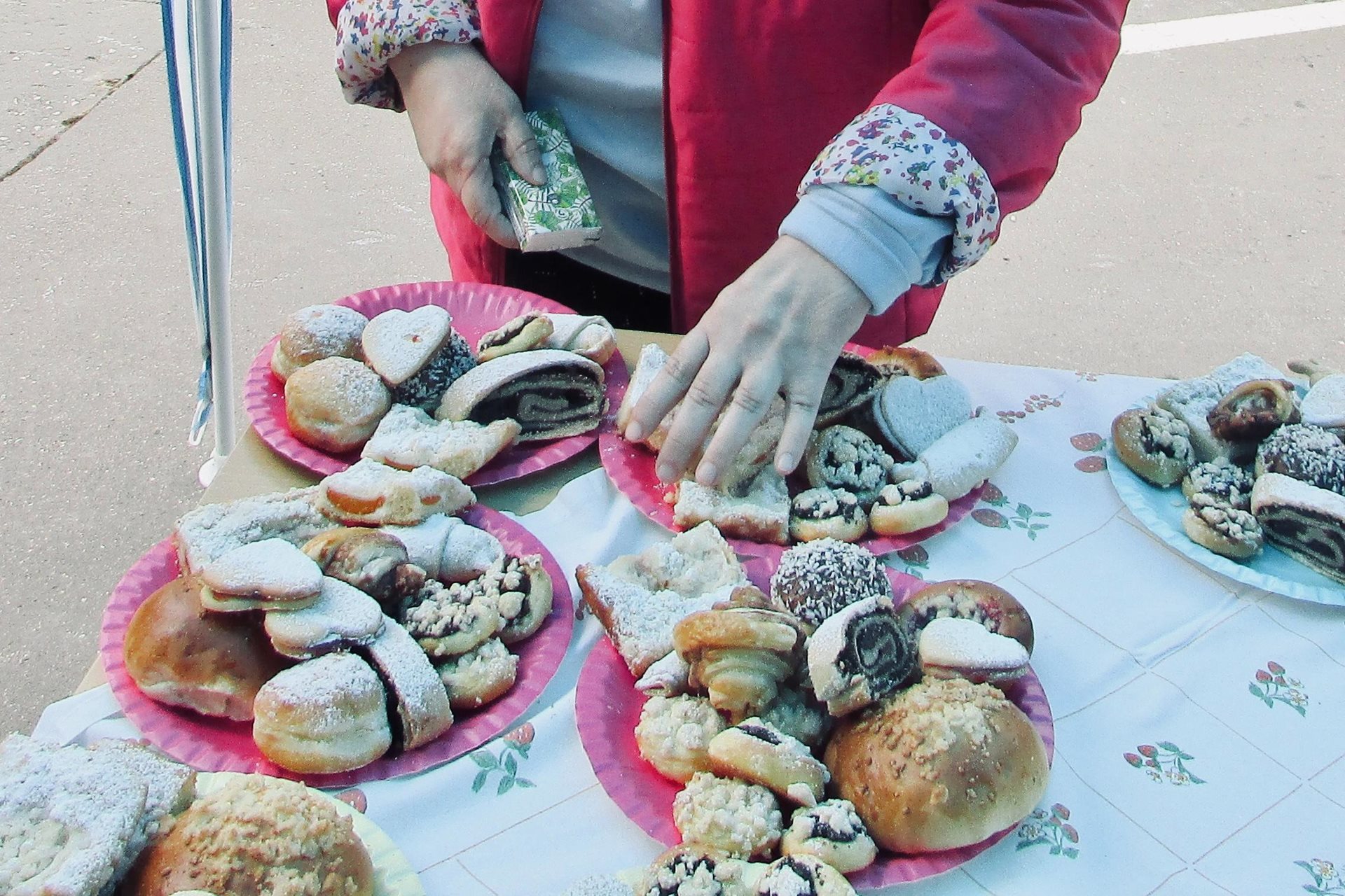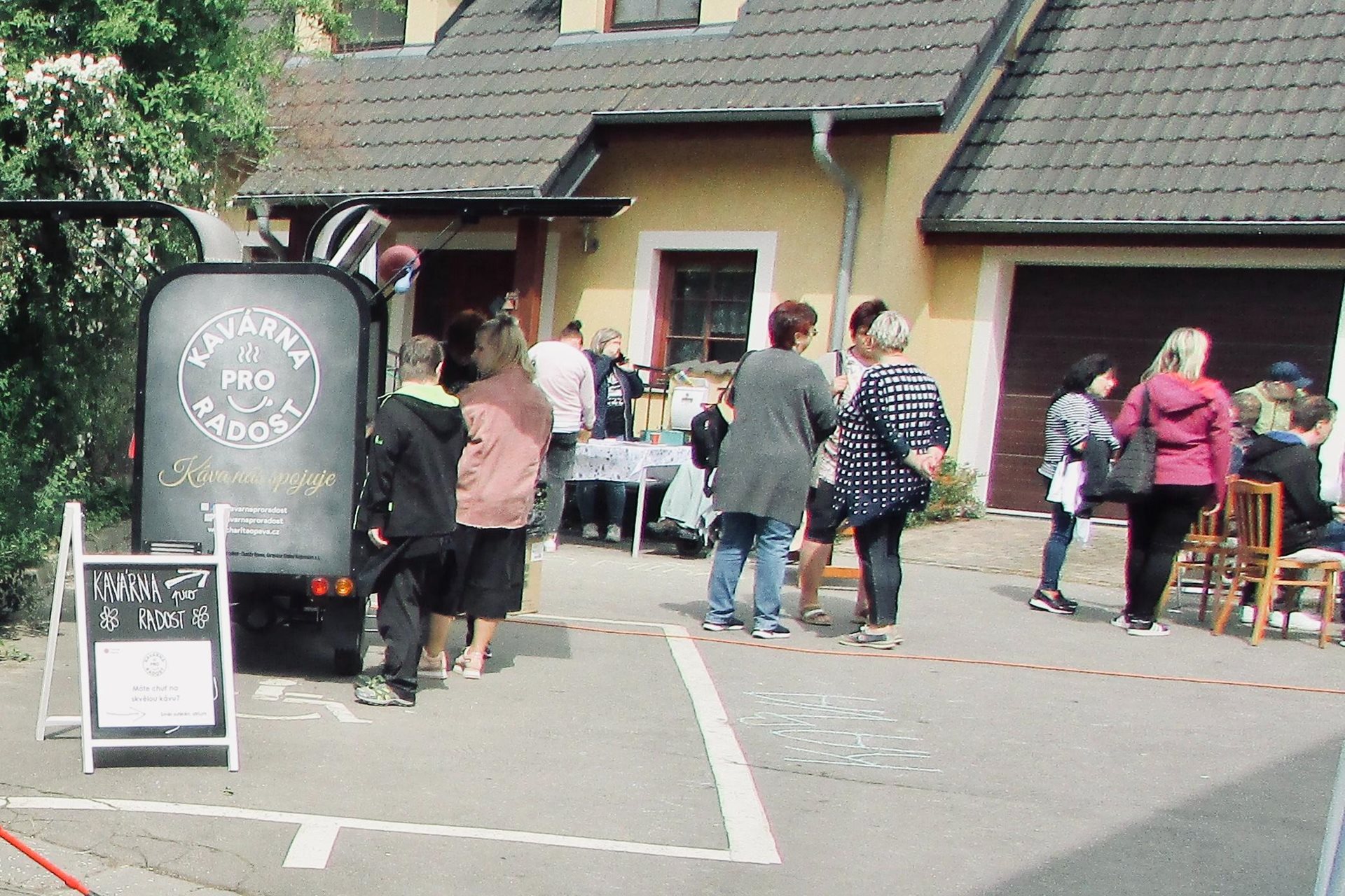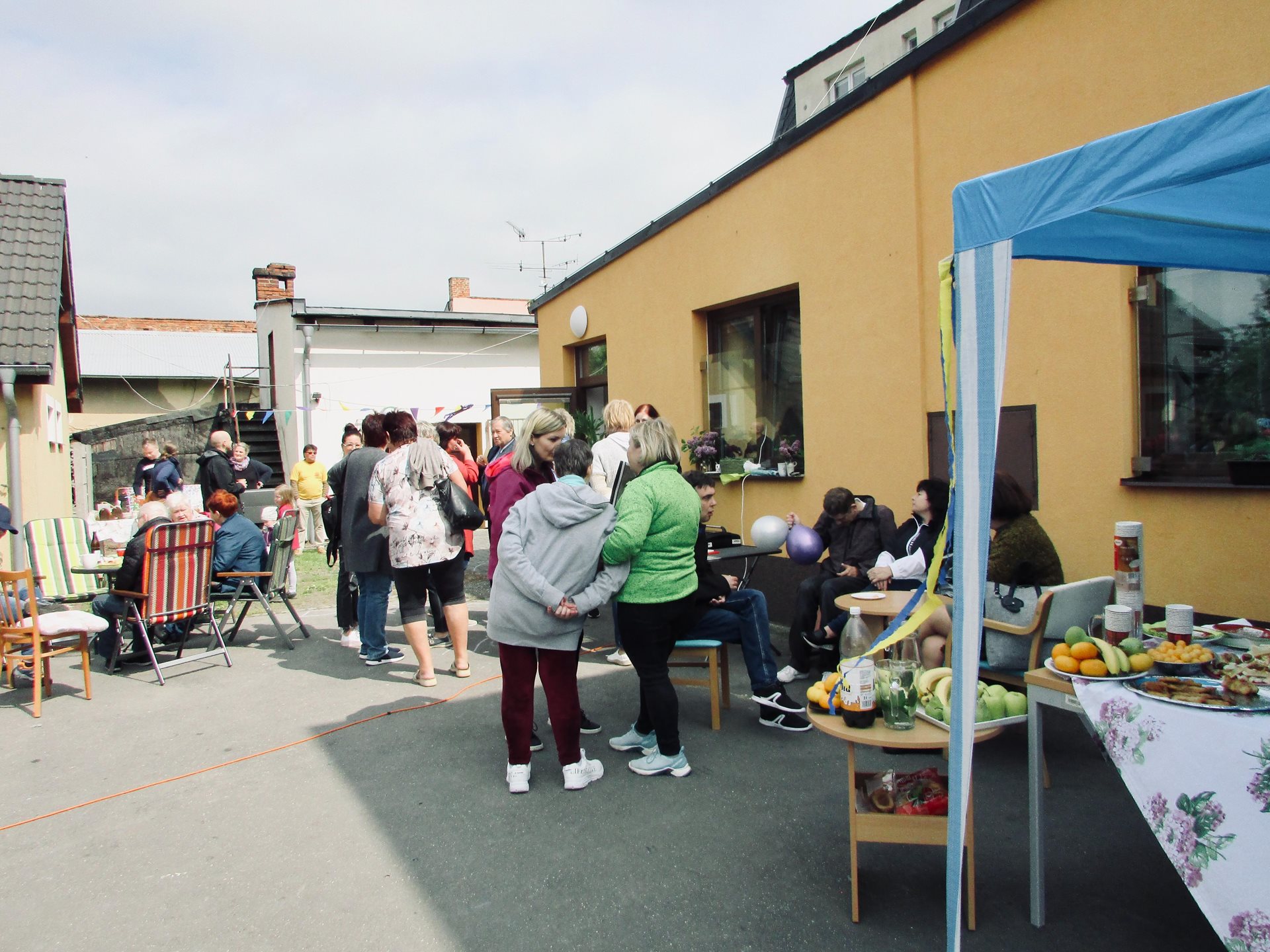 Náhle se z ničeho nic objevil vůz s nákladem občerstvení. Každý se ujal různého úkolu – jeden převzal velení a srdečně přivítal dobrodince, který ochotně pomáhal vybalovat zásoby a zajímal se o průběh příprav, druhý přinesl špekáčky a třetí se postaral o hudbu a přípravu výrobků z keramiky k možnosti zakoupení či jen prohlédnutí, co uživatelé služeb tvoří. Po obědě jsme připravili bohatý raut, do kterého kolegyně ze služby přidaly koláče, řízky, sladkosti a slané pečivo.