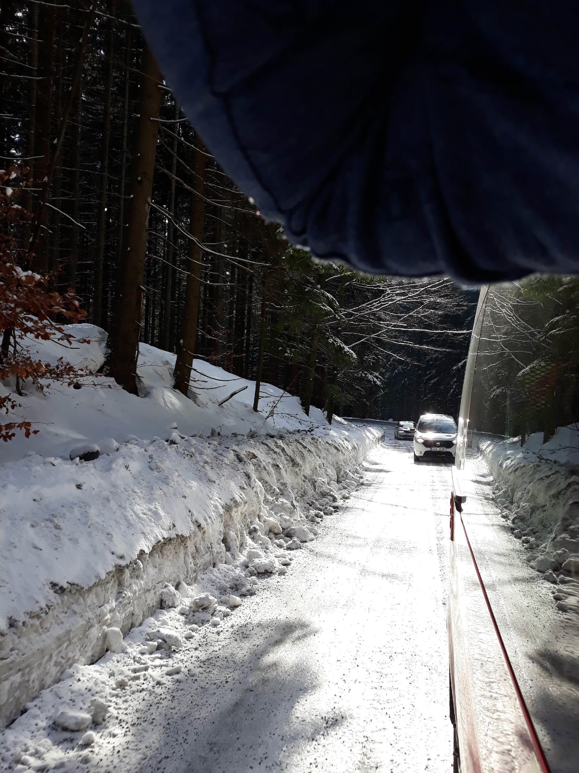 Když se auta vyšplhala až na samý vršek Pusteven, čekalo na všechny překvapení v podobě slunného počasí a velkého množství sněhu. Nějaký ten mráček nikomu náladu nezkazil.