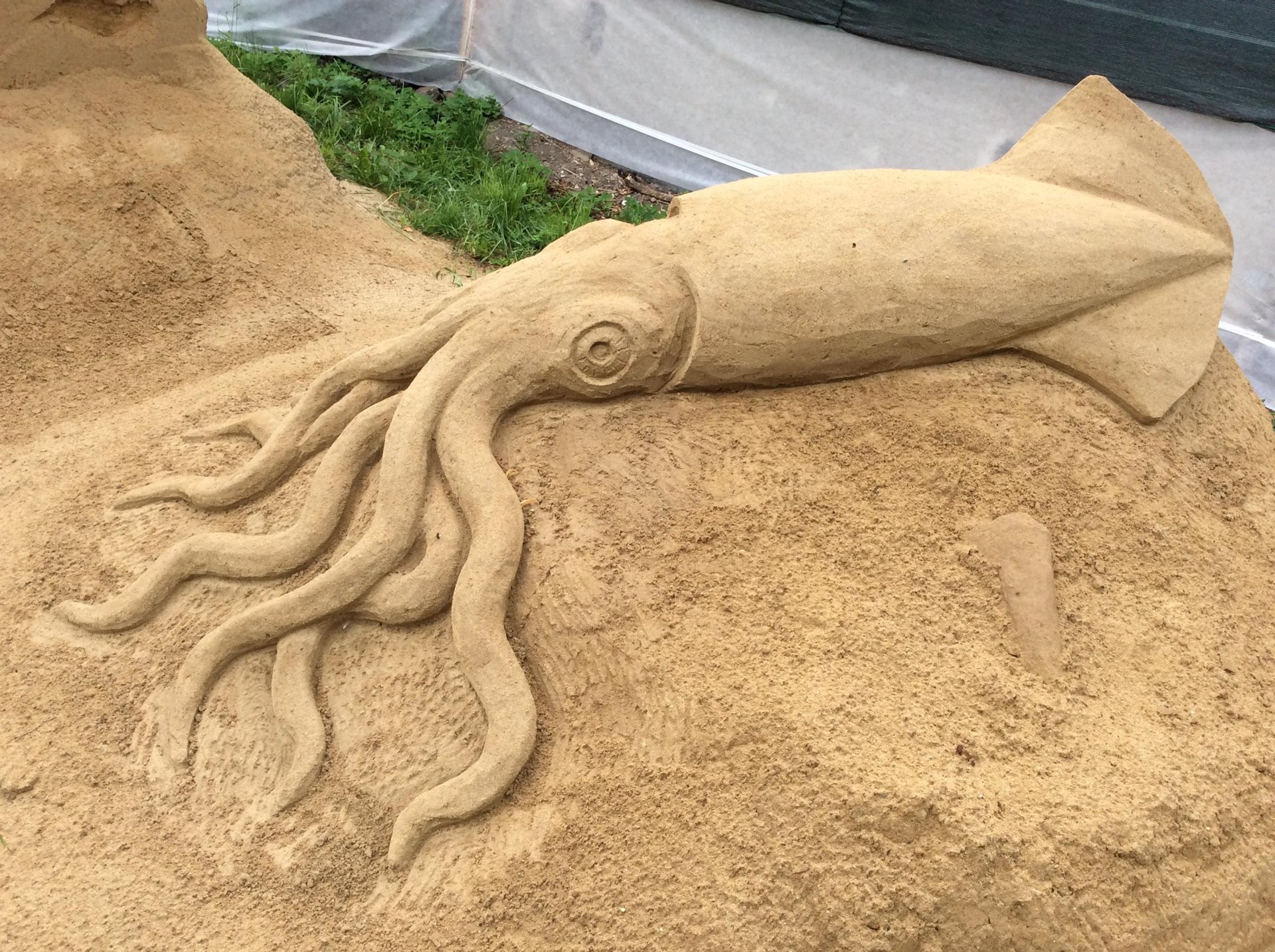 Prohlídku soch provázel náročný travnato – pískový terén. Ten proklínali všichni, co tlačili vozíky, uživatelé spokojeně mokli pod pláštěnkami a mohutně nás povzbuzovali, protože chtěli všechno vidět.