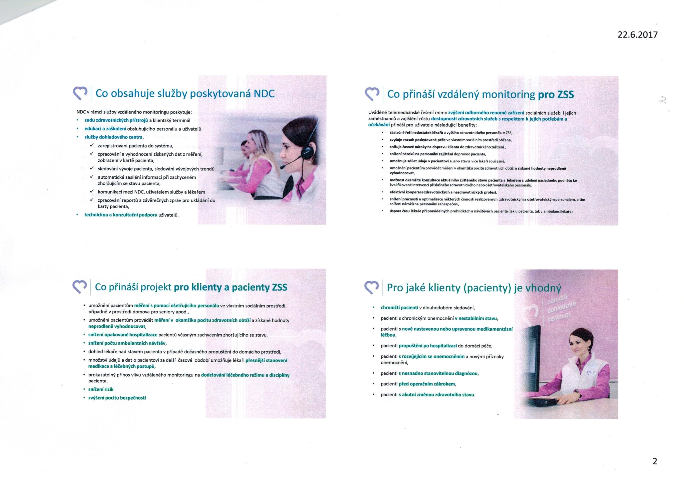 Národní dohledové centrum /NDC/ - jedinou činností je monitorování fyziologických funkcí ke vzdálenému sledování, snímání, přenosu, vyhodnocování a zobrazování získaných hodnot a údajů od monitorovaných uživatelů.