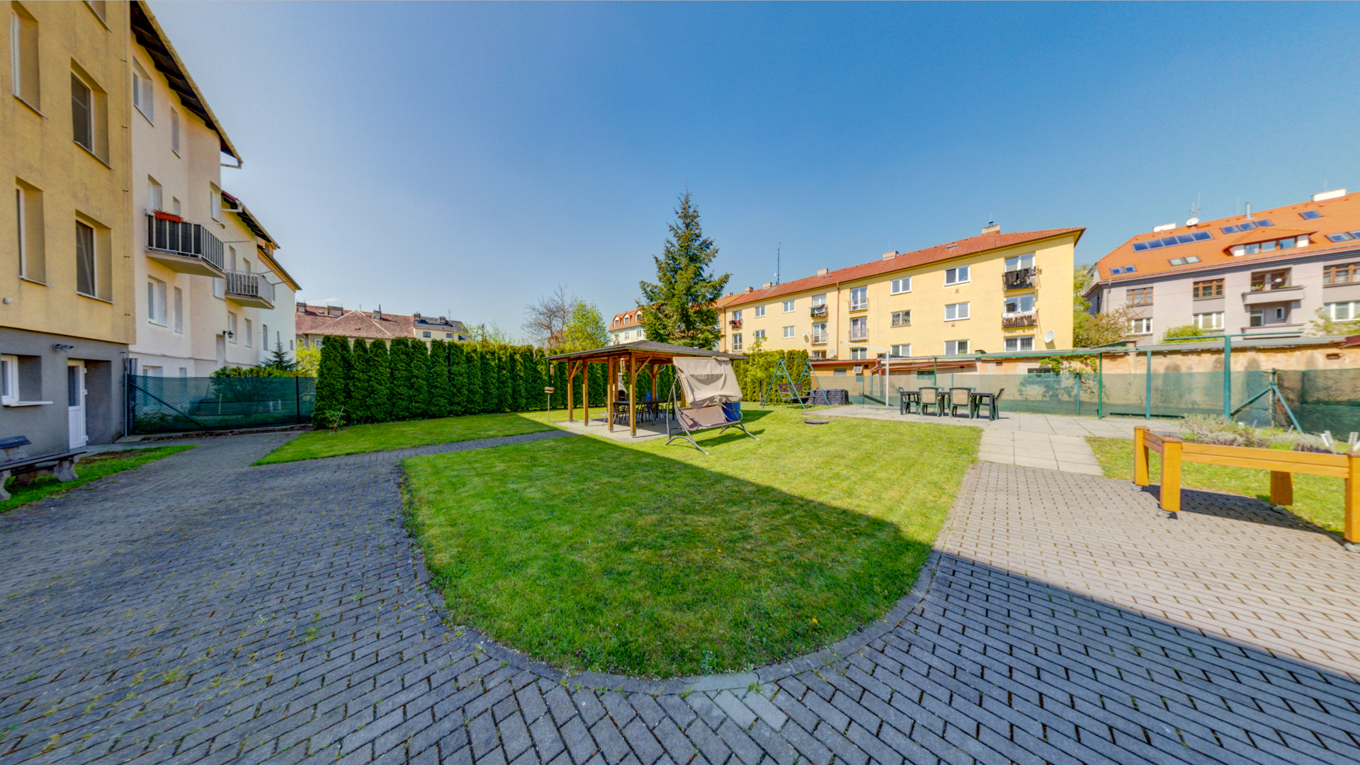 V suterénu se nachází pracovní prostory, technické zázemí a společenská místnost, která slouží pro společné akce uživatelů. K dispozici je také zahrada s posezením, altánem a venkovním krbem..