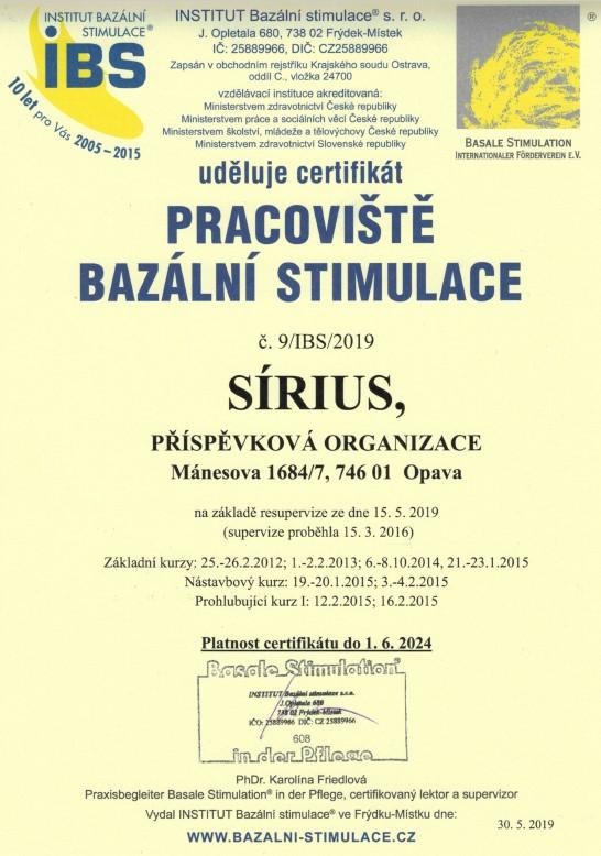 Výsledkem jejich profesionálního přístupu je potvrzení poskytování kvalitní služby, což je doloženo získáním dalšího certifikátu Pracoviště Bazální stimulace.