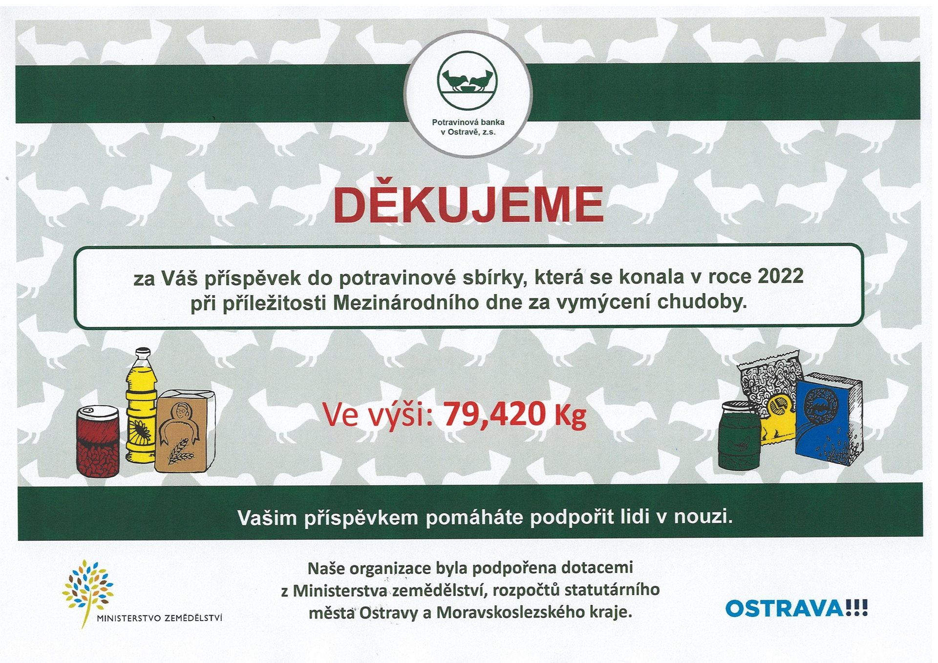 Zaměstnancům organizace se podařilo nasbírat přes 300 kusů potravin o celkové váze téměř 80 kilogramů!