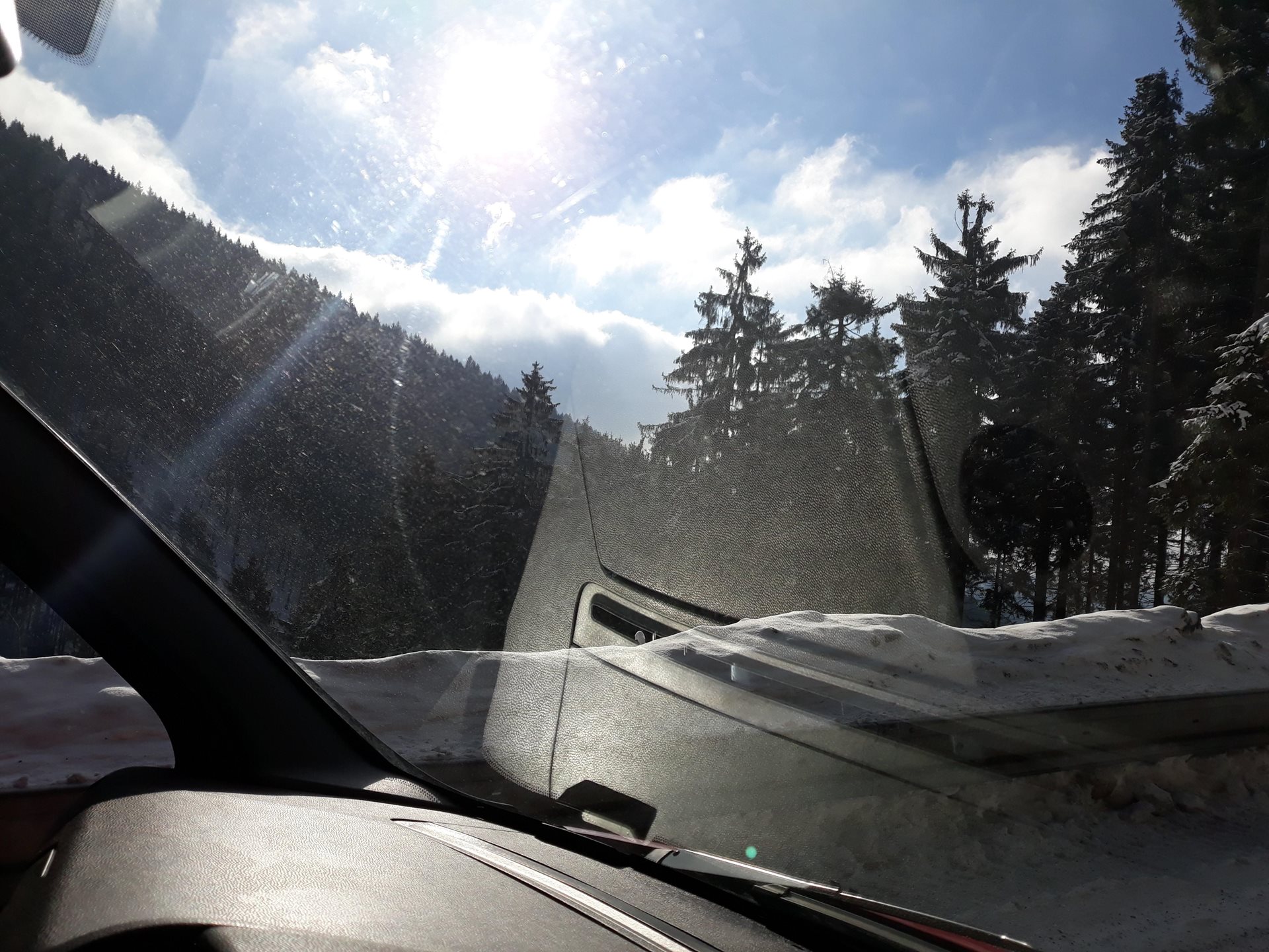 Když se auta vyšplhala až na samý vršek Pusteven, čekalo na všechny překvapení v podobě slunného počasí a velkého množství sněhu. Nějaký ten mráček nikomu náladu nezkazil.