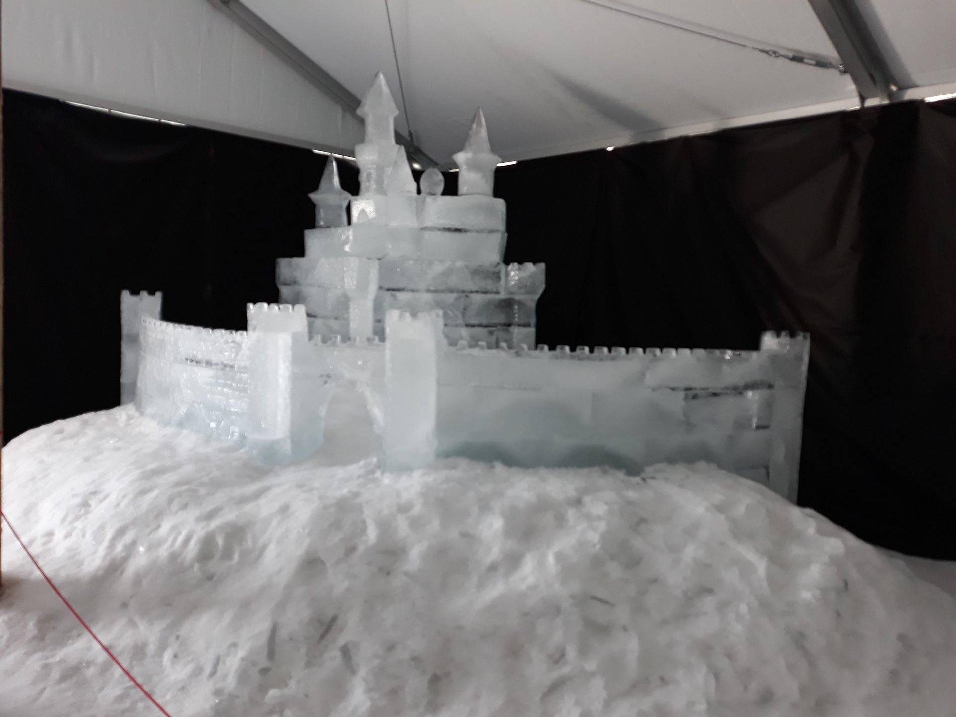 Nejdříve jsme ledové sochy neviděli, ale po bližším prozkoumání okolí Pusteven byly objeveny ve velkém stanu. Tady se všichni chtěli fotit, muži s rytířem a drakem. Ženy chtěly mít na fotce velký ledový hrad.