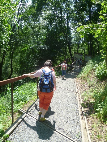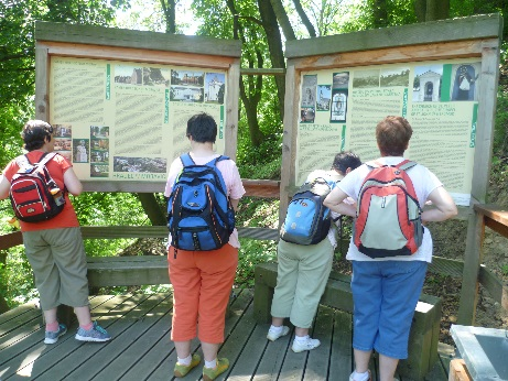 Když jsme načerpaly dostatek sil, tak jsme se vydaly na zpáteční cestu. Zvolily jsme naučnou stezku, která začínala právě v této zahradě. Stezka vedla klikatě z kopce dolů a my musely dávat velký pozor, abychom jsme se neskutálely až k jejímu konci. Stezka měla dvě zastavení s informačními tabulemi. Na prvním jsme si přečetly něco o historii zámku a kostela, a na druhém byly informace o živočiších a rostlinách vyskytujících se v této lokalitě. Stezka vyústila na velké parkoviště a odtud jsme se pomalou chůzí vracely po cyklostezce zpátky do města.